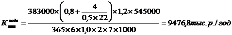 В нашем примере стоимость парка вагонов, необходимого для освоения расчетного объема перевозок груза при железнодорожном варианте доставки при цене крытого вагона 74 400 р., в принятых условиях работы составит: