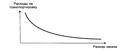 Рис. 2. Зависимость расходов на транспортировку от размера заказа