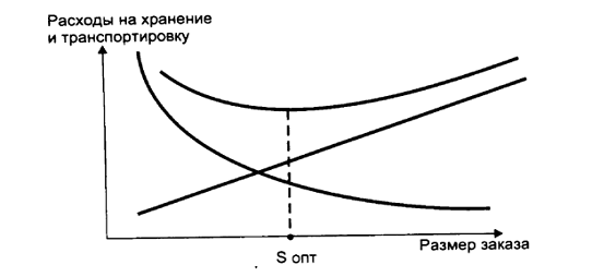 где Собщ - общие затраты на транспортировку и хранение; Схран - затраты на хранение запаса; Стсп - транспортно-заготовительные расходы.