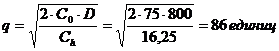 Рассмотрим пример расчета оптимального размера заказываемой партии. В качестве исходных данных примем следующие величины. Стоимость единицы товара - 40 руб. (0,04 тыс. руб.).