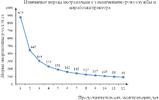 3 Динамика амортизационных отчислений в зависимости от срока службы машин,