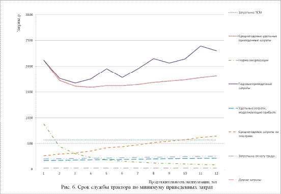 Для современных машин характерны закономерности роста затрат на поддержание их в работоспособном состоянии в связи с увеличением продолжительности использования. В то же время, чем больше срок использования, тем выше наработка за этот срок, тем меньшая доля первоначальной стоимости машины приходится на единицу наработки. Исходя из этих закономерностей, необходимо определить такой срок службы и наработку, при которых первоначальные затраты, связанные с распределением цены машины, и затраты на её эксплуатацию были бы минимально возможными в расчете на единицу выполненной работы. При этом затраты, связанные с применением машин, минимально возможной величиной войдут в себестоимость производимой продукции и таким образом обеспечат снижение издержек на её производство.