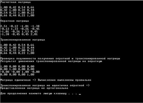 сравнения обратной матрицы и транспонированной матрицы, а также финальный вывод