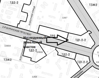 Рис. 2. Территориальная зона исследуемого земельного участка и