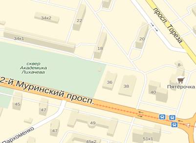 Исследуемый земельный участок имеет кадастровый номер №78:36:5367:7 и расположен в Санкт-Петербурге по адресу: 2-й Муринский проспект, дом 36, литера А, Выборгский район.