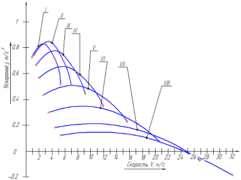 Таблица 4 - Данные для построения графика ускорения автомобиля