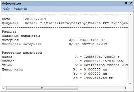 . Определение объема металла и координат центра тяжести