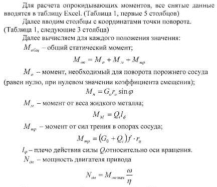Определение параметров привода сосуда с жидким металлом