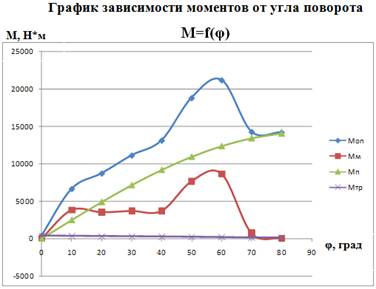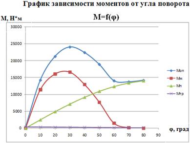 Установлена максимальная мощность привода для преодоления угла поворота примерно 30°. Она равна 3,72 кВт. Следовательно, необходимо подобрать двигатель с мощностью, равной либо больше полученной. В нашем случае это двигатель 4А 132S8У 3 с мощностью 4 кВт.