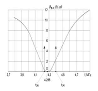 Как видно из рисунка 7, при отклонении частоты от номинального значения коэффициент передачи возрастает, что позволяет повысить уровень спектральных составляющих сигнала, удалённых от поднесущей и в большей степени подверженных воздействию помех.