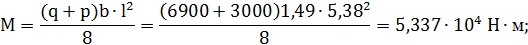 ) Определяем максимальный изгибающий момент M в