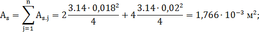 диаметр, м и площадь поперечного сечения, м2 j-го арматурного стержня.