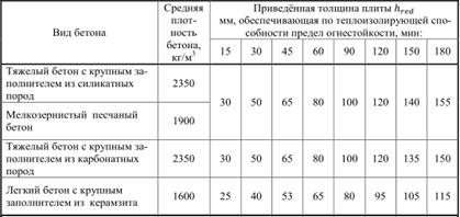 предела огнестойкости сплошной железобетонной плиты: