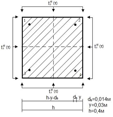 Рис. 1.1.2.1. Расчетная схема определения предела огнестойкости железобетонной колонны, подвергаемой четырехстороннему воздействию пожара: