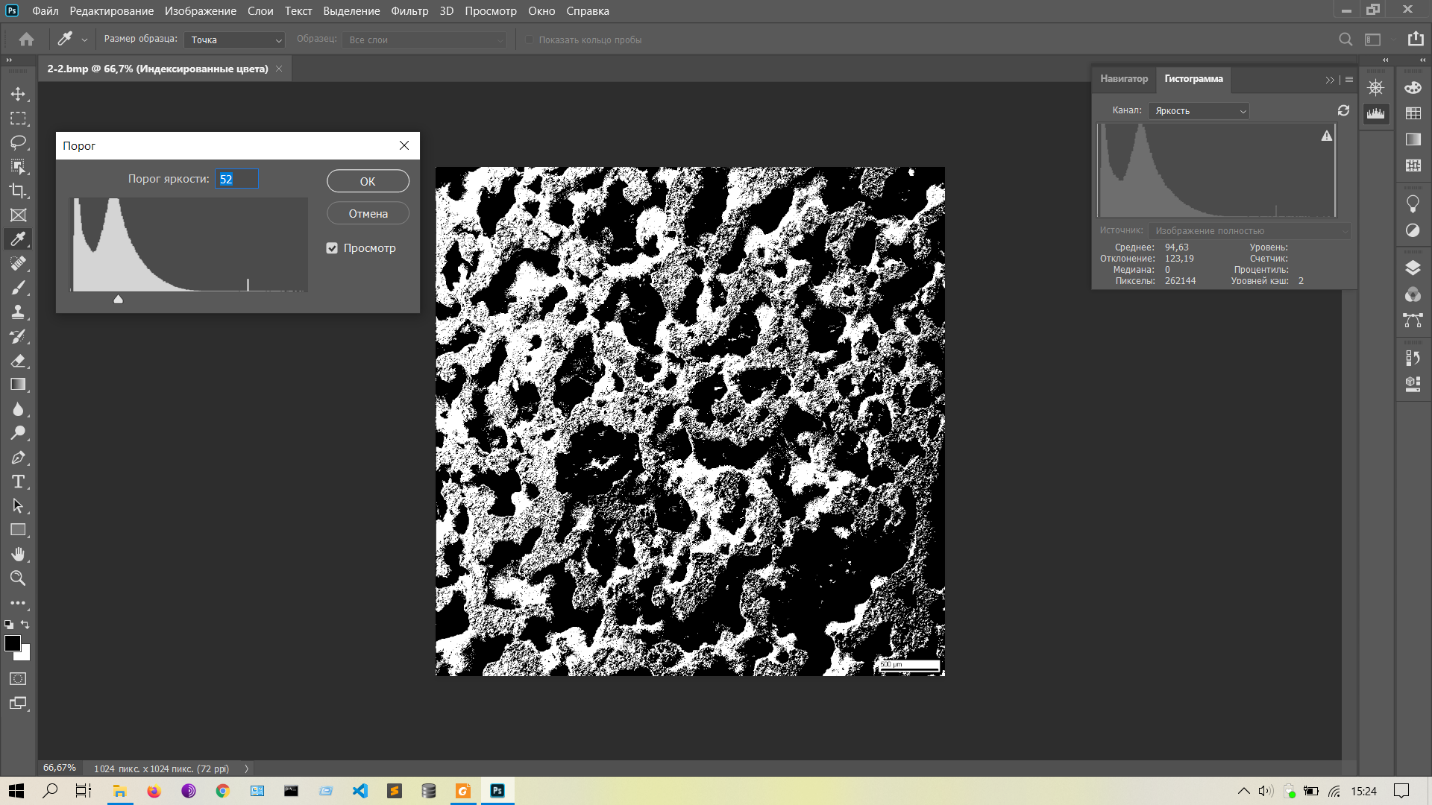Рисунок 11 В предложенном окне устанавливаем вручную порог яркости так, чтобы среднее значение яркости не изменилось