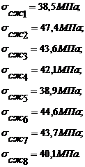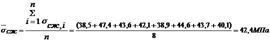 2. За предел прочности горной породы на одноосное сжатие принимаем среднеарифметическое значение по результатам n-испытаний (в нашем случае n = 8).