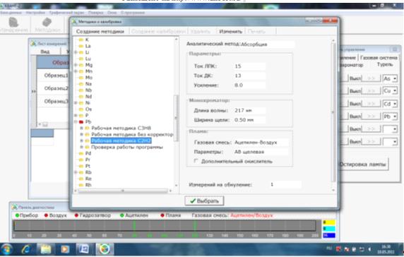 Спектрометр готов к проведению измерений. Перед построением либо уточнением калибровки рекомендуется прогреть горелку в течение 15 минут.