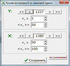 Автоматический режим юстировки запускается нажатием кнопки «Юстировка лампы» в закладке «Турель».