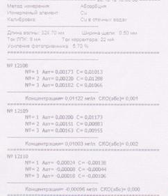 Проведен анализ трех проб, по три замера в каждой, выведена средняя концентрация.