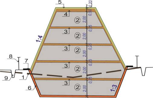 Рисунок 1 - Технологическая схема полигона в разрезе: