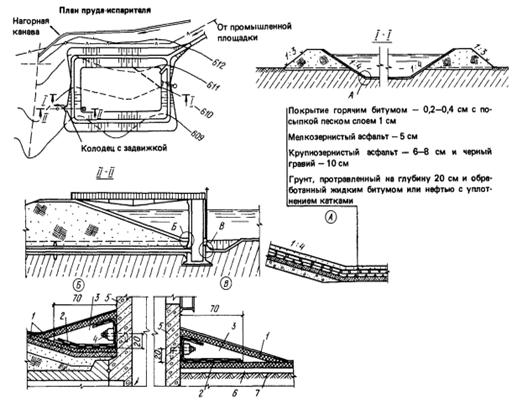 Основанием однослойного экрана могут быть практически любые грунты, поддающиеся обработке грейдером, с модулем деформации после уплотнения не менее 10 МПа (100 кгс/см2). После планировки грунты подвергаются обработке (протравливанию) гербицидами на глубину 20 см. Затем производится поверхностная обработка грунта на глубину 10 - 15 см с внесением битума или сырой нефти из расчета 1,5 - 2,0 кг/м2. После чего основание уплотняется 5-тонными катками до полного устранения деформации. На подготовленное основание укладывается мелкозернистый асфальтобетон слоем 40 - 60 мм. Поверхность асфальтобетона покрывается слоем жидкого битума толщиной 2 - 4 мм с последующей посыпкой слоем песка толщиной 5 - 10 мм.