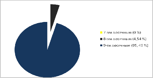 преимущественное большинство детей родились 9-месячными (95,45 %), трое ребят