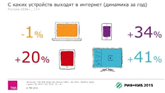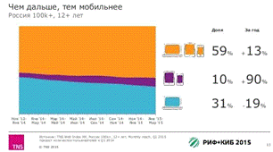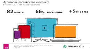 По данным проекта TNS Web Index, 50 млн. из всех 82 млн. российских пользователей Интернета в целом выходят в Интернет с помощью мобильных устройств. При этом прекратился рост пользователей десктопного Интернета.