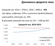 Рисунок 2.5 Динамика среднего чека в период с 2009 по 2015 гг.