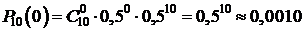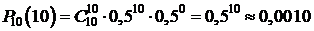 В нашей задаче: n = 10, p =