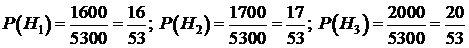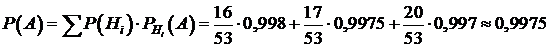 Задание 4. В район изделия поставляются тремя фирмами. Известно, что первая фирма поставляет товар с браком в 0,2%, вторая - 0,25%, третья - 0,3%. С первой фирмы поступило 1600, со второй - 1700, а с третьей - 2000 изделий. Найти вероятность, что приобретённое изделие окажется