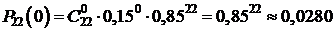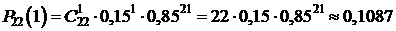 В нашей задаче: n = 22, p = 0,15, q = 1- p = 0,85.