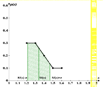 Начертить график закона распределения и показать на нём вычисленные математическое ожидание и среднее квадратическое отклонение