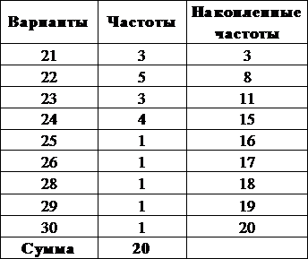 в) вычислить среднюю величину, моду, медиану, дисперсию, среднее квадратическое отклонение, коэффициенты ассиметрии и эксцесса.