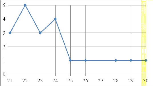 Модальным значением ряда будет то значение, которое встречается наибольшее количество раз, т.е. то которое имеет наибольшую частоту.