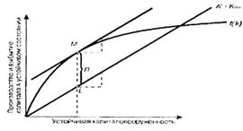 между объемом выпуска и величиной выбытия капитала в устойчивом состоянии. При