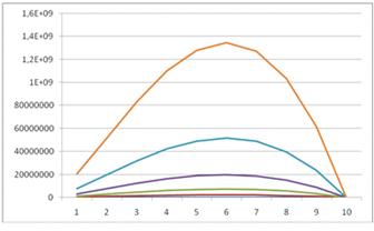 промежутку (0,1;0,9) (с шагом 0,1), на пять периодов: