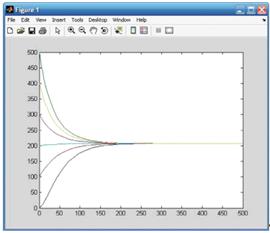 Из рисунка видно, что k стабилизируется на уровне 207