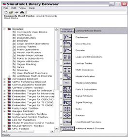 Далее изложим процесс имитации в программном пакете Simulink . Программа Simulink является приложением к пакету MatLab, которая реализует принципы визуального программирования, т.е. пользователь создает на экране модель с помощью встроенных стандартных блоков. При этом пользователю не нужно досконально изучать язык программирования и численные методы, а достаточно общих знаний о программе и в той области исследования, в которой он работает. При работе с Simulink пользователь может пользоваться как встроенной библиотекой блоков, так и создавать свои собственные не только блоки, но и целые библиотеки блоков.