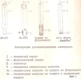 Исходя из этих соображений, было сделано следующее. Из индифферентного электропроводящего стекла (ЭО-01 или ЭО-021) изготавливалась индикаторная часть электрода, затем на стекло наносился тонкий слой порошка графита или углерода марок :