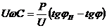 батареи конденсатора. Из векторной диаграммы видно, что для получения угла
