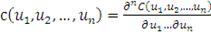 непрерывные случайные величины, можно видеть, что плотность копула-функции c![]()