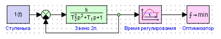 управления, состоящей из ПИ-регулятора и инерционного объекта 1-го порядка с