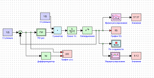 1. Выполнить программную реализацию имитационной модели системы управления в заданных режимах работы, состоящей из ПИ-регулятора и инерционного объекта с запаздыванием.
