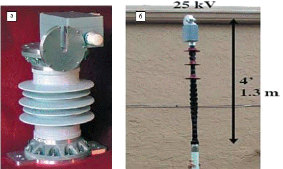 Компания FieldMetrics, Inc. основана в 2001 г. и специализируется на разработке и производстве трех линеек оптоволоконных датчиков для средневольтовых (11-36 кВ) энергетических сетей переменного тока: MetPod, Fiber MetPod, MetPod Lite класса 0,2. В линейку MetPod входят комбинированные датчики тока и напряжения (рис.5а), которые могут крепиться непосредственно на опоре. Электронный блок с автономным блоком питания выполнен в единой конструкции с датчиками. Связь с пунктом сбора и обработки информации осуществляется по радиоканалу мощностью до 1 Вт.