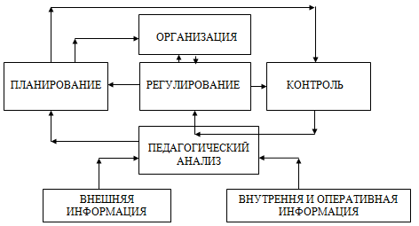 Связь порождения характерна для связи функций педагогического анализа и планирования, планирования и организации, планирования и контроля. Педагогический анализ итогов работы за прошедший период закладывает основу для корректировки новых целей и задач, определения путей их достижения, то есть порождает планирование. Планирование, в свою очередь, порождает функцию организации, направленную на создание определенной организационной структуры в коллективе для выполнения плана, а также функцию контроля за реализацией плана. Контроль порождает функцию регулирования, причем эта связь носит транзитивный характер, так как данные контроля, прежде чем они будут определять регулирование, должны быть проанализированы. Связь преобразования присуща связи функции регулирования со всеми другими функциями, так как в процессе регулирования вносятся изменения в план работы, и осуществление организационной деятельности по контролю и анализу. При этом связь регулирования и контроля может быть связью развития, т.к. регулирование, если это необходимо может качественно изменить контроль.