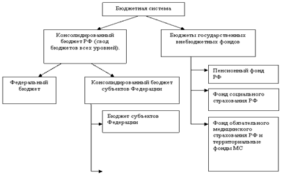 Организационные принципы построения бюджетной системы, ее структура, взаимосвязь объединяемых в ней бюджетов определяет бюджетное устройство государства. Что же представляет собой бюджетное устройство Российской Федерации, как происходит взаимодействие бюджетов всех уровней? Ответ на этот вопрос во многом определит причины некоторых проблем современного бюджета, наметит пути к его совершенствованию. Бюджетная система РФ представляет собой основанную на экономических отношениях и юридических нормах совокупность федерального бюджета, республиканских, краевых, областных, иных бюджетов субъектов РФ и местных бюджетов. В соответствии со статьей 10 Бюджетного кодекса Российской Федерации (Федеральный закон от 31 июля 1998 г. № 145-ФЗ) закрепляет в России трехуровневую бюджетную систему: