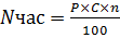 С - средний % загрузки зала, % (из наблюдений или по примерному графику загрузки торгового зала;