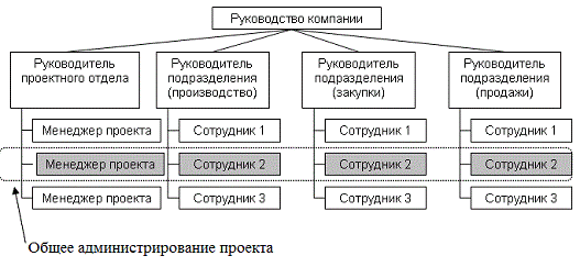 ) Двойное руководство в результате подчинения исполнителей одновременно руководителю проекта и менеджеру службы, что может приводить к возникновению конфликтных ситуаций;