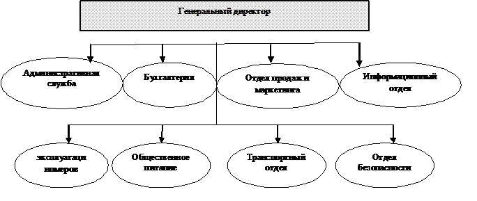 Структура управления гостиничного комплекса "RimarHotel" представляет собой линейно-функциональную структуру управления (рис.8). Ответственность за принятие общих управленческих решений лежит на высшем звене управления. Подразделения являются функциональными звеньями, каждое из которые используют свою специфическую технологию, но все вместе они имеют общую цель - удовлетворение потребностей клиентов.