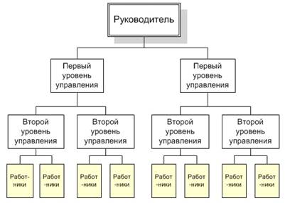 · уровни управления - совокупность прав, обязанностей и ответственности, характерная для должностных лиц, занимающих определенную ступень в иерархической структуре организации.